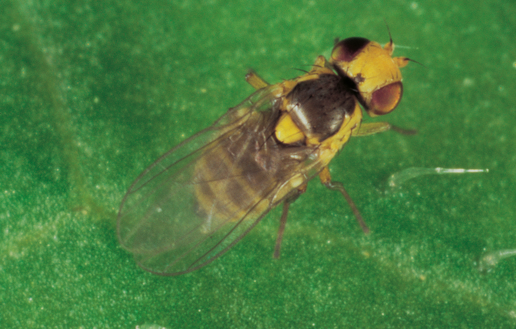 Musca miniera apare in sere si solarii si ataca in special culturile de tomate. Este daunator in stadiul de larva si se dezvolta in interiorul frunzelor distrugand tesuturile dintre epiderme. Atacurile produse au un caracter generalizat, evidentiat pe frunze prin prezenta a numeroase galerii inguste si ramificate, cu aspect sidefiu. Cand numarul de galerii depaseste 50% din suprafata de asimilatie a frunzelor, acestea se usuca si cad. Musca miniera este un daunator specific culturilor de tomate din spatii protejate, dar ataca si in camp. Principala sursa de infestare este reprezentata de rasadurile provenite din serele inmultitor.